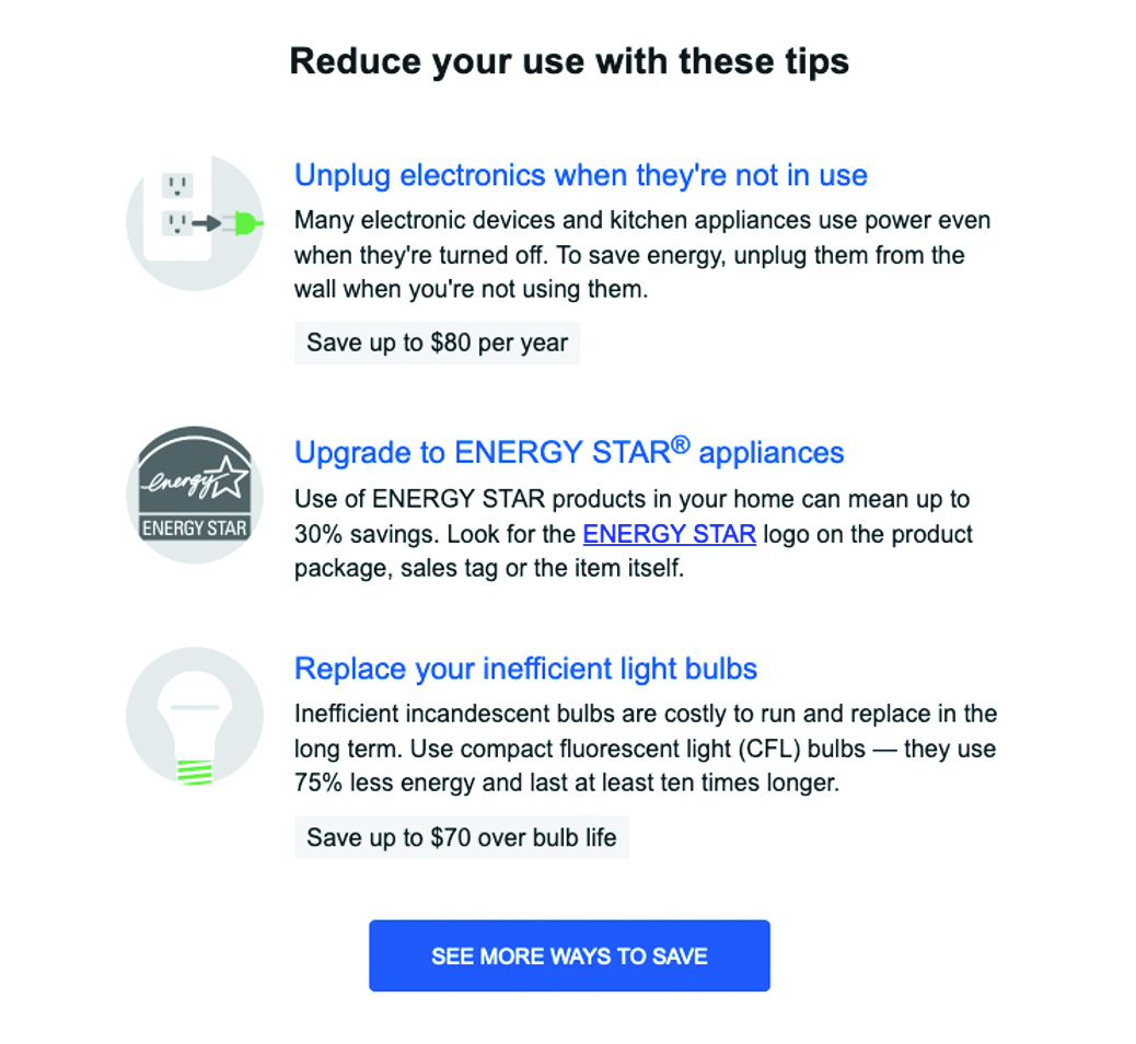 Home Energy Reports are full of relevant tips and insights to help you reduce your energy usage and lower your electric bill.