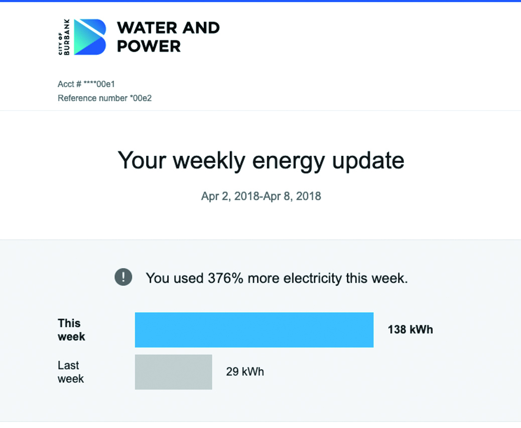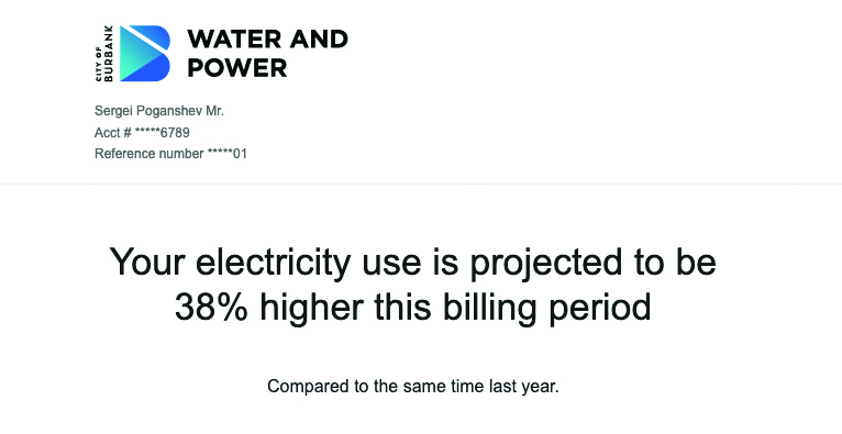 Our Home Energy Reports are monthly email reports that are designed to help you save energy. Each report uses your actual energy use data, so you can see how you compare to other Burbank Water and Power customers and get relevant tips and insights.